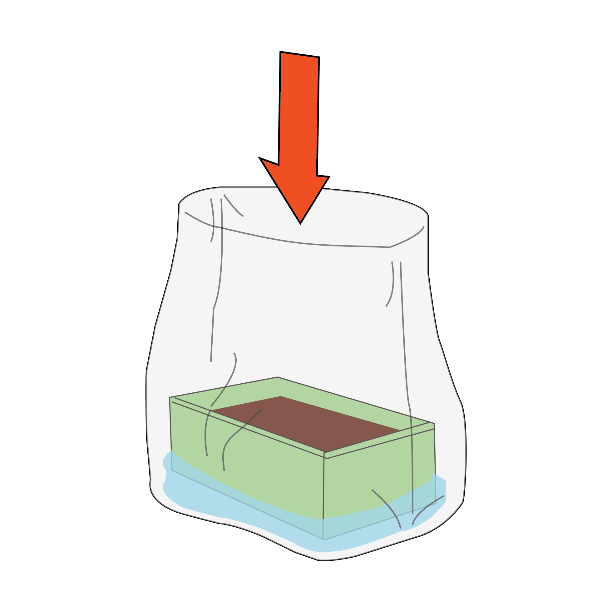 Stell die Growbox in die Growtüte rein. Die Box mit dem Substrat darf dabei nicht nass werden.