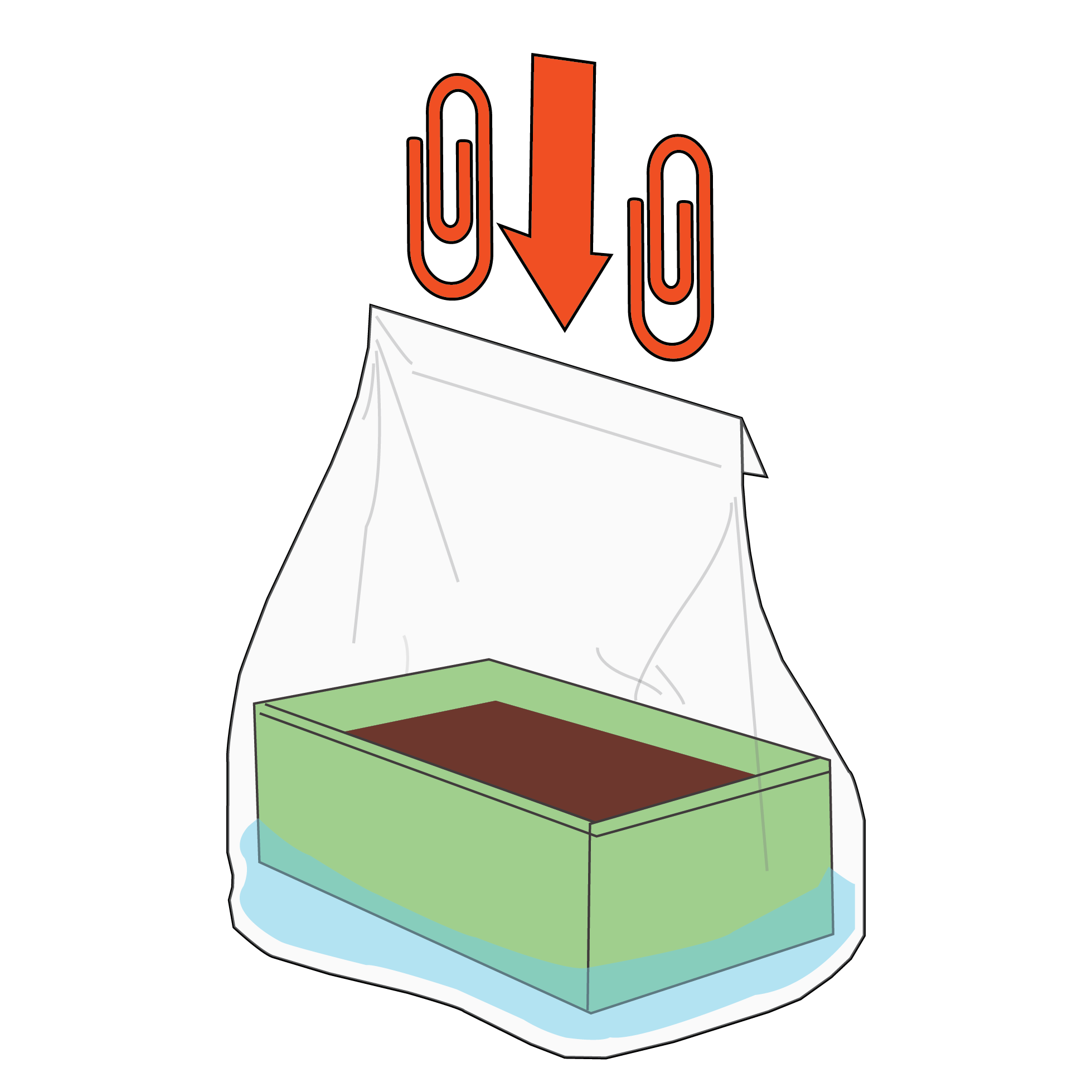 Klapp die Tüte oben zweimal um (2cm), bevor Du Sie dann mit den 2 Klammern fest machst.