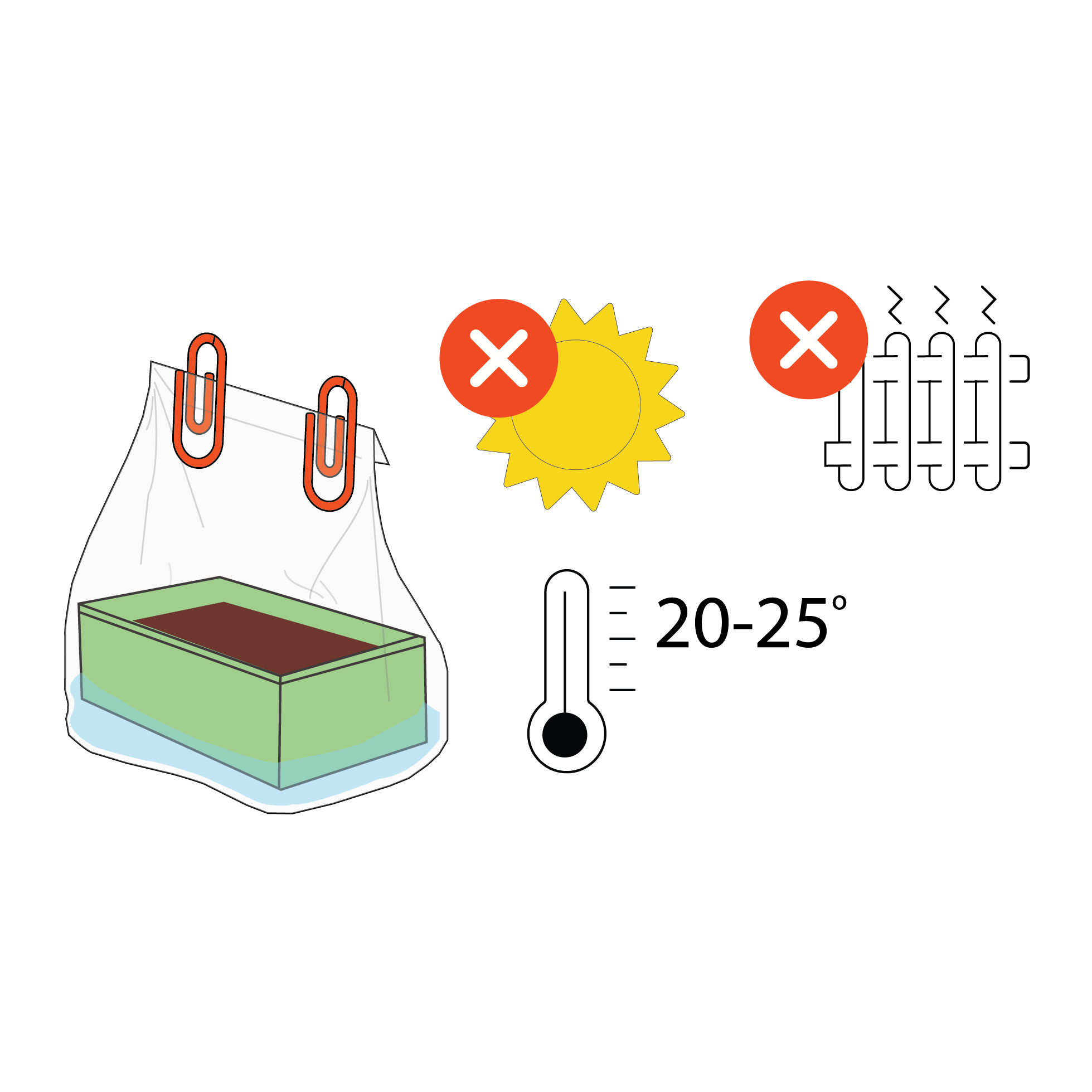 Stell die Growbox nicht an eine Heizung! Sie darf nicht im direkten Sonnenlicht stehen und die Ideal Temperatur liegt zwischen 20-26 °. Bei 24° bekommst Du die größte Ernte.